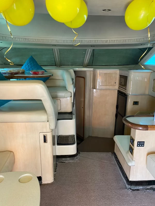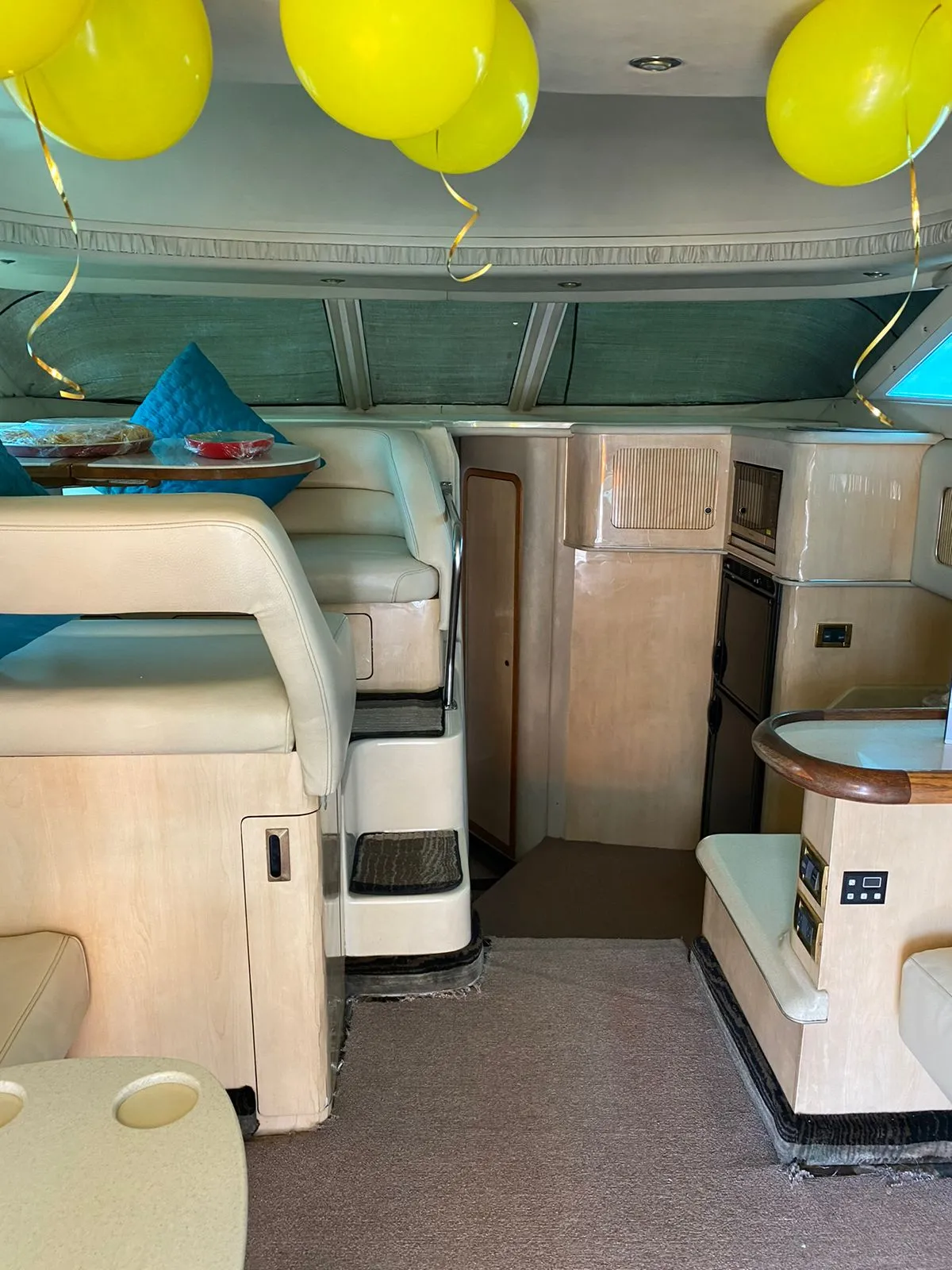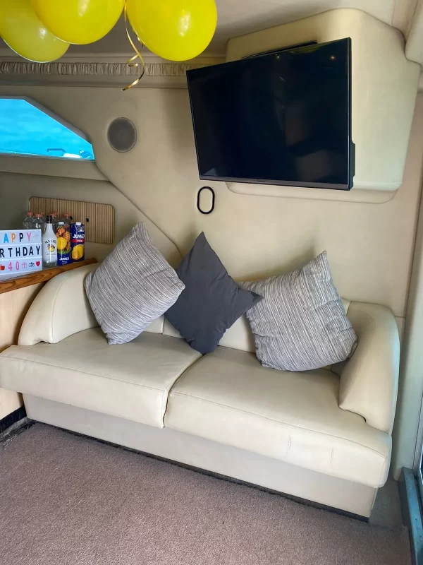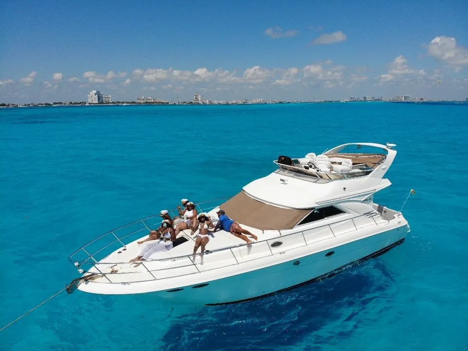 Horseplay on the water. Includes a large luxurious master stateroom with ensuite bathroom and 2 guest cabins, with bathroom, cherry wood interior cabinets, Clarion am / fm / cd sound systems in the cabin and another sound system for the bridge and cabin, electric windlass, deck chairs, television, bimini top and deck aft umbrella, aft bench and comfy cockpit chairs, cockpit built-in coolers, 50 AMP Glendenning master cable, a deck spacious with room for 12 plus skipper, easy access to the front deck via the bridge to the deck stairs.