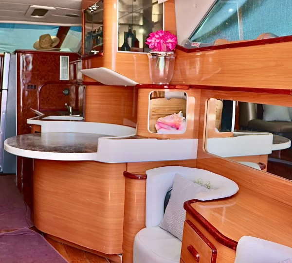 The beautiful yacht includes a host of amenities that will make every excursion on the water completely enjoyable.