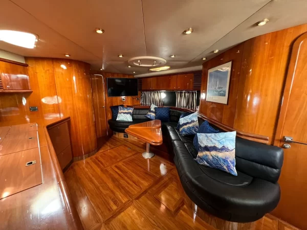 The main living room is luxuriously appointed with luxurious seating and a fully equipped kitchen.